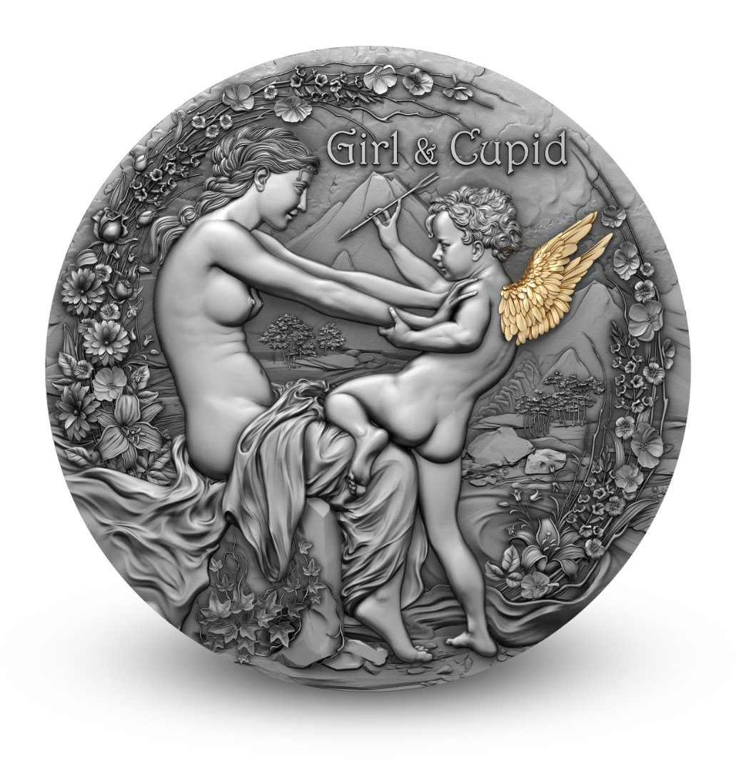 Questa squisita moneta d'argento da 2 once raffigura una scena d'amore poetica tra una ragazza e Cupido, simbolo di ispirazione e passione. La finitura antica, i magnifici rilievi e la doratura selettiva evidenziano la raffinata bellezza della composizione. Il rovescio mostra un'elegante ragazza che accetta l'amore dell'affascinante Cupido: un'ode ai sentimenti umani e all'armonia eterna. La moneta è contenuta in un elegante cofanetto con certificato di autenticità ed è limitata a soli 500 esemplari in tutto il mondo.