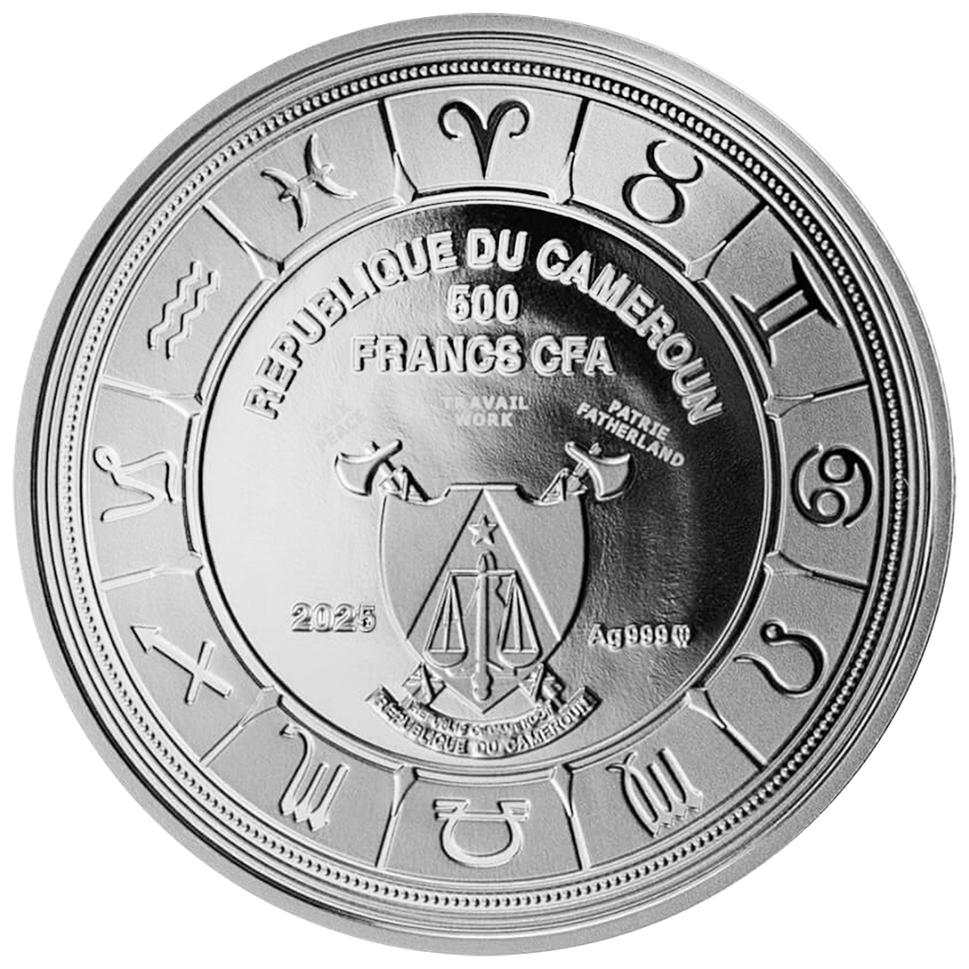Camerun: moneta d'argento da collezione Segni zodiacali. Scorpione 2025 (ciondolo), Proof, colorata, 10 g di argento puro (0,999)