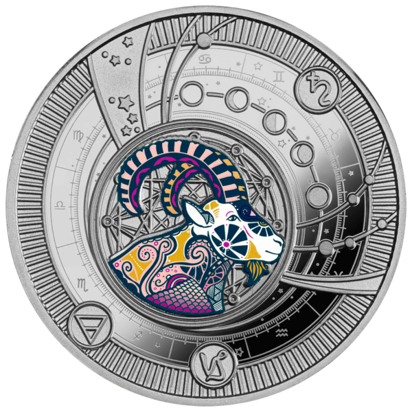 Questa squisita moneta d'argento della serie "Zodiac Signs" è dedicata al Capricorno, un segno di terra che simboleggia fermezza, responsabilità e forza interiore. Il rovescio presenta il Capricorno decorato con delicati ornamenti e motivi su uno sfondo di cielo stellato e simboli zodiacali. La moneta è coniata in qualità Proof con dettagli impressionanti e colori brillanti. Un elegante anello pendente permette di indossarla come un gioiello, sottolineando l'individualità del proprietario. La moneta è contenuta in un cofanetto con certificato di autenticità ed è limitata a soli 599 esemplari in tutto il mondo.