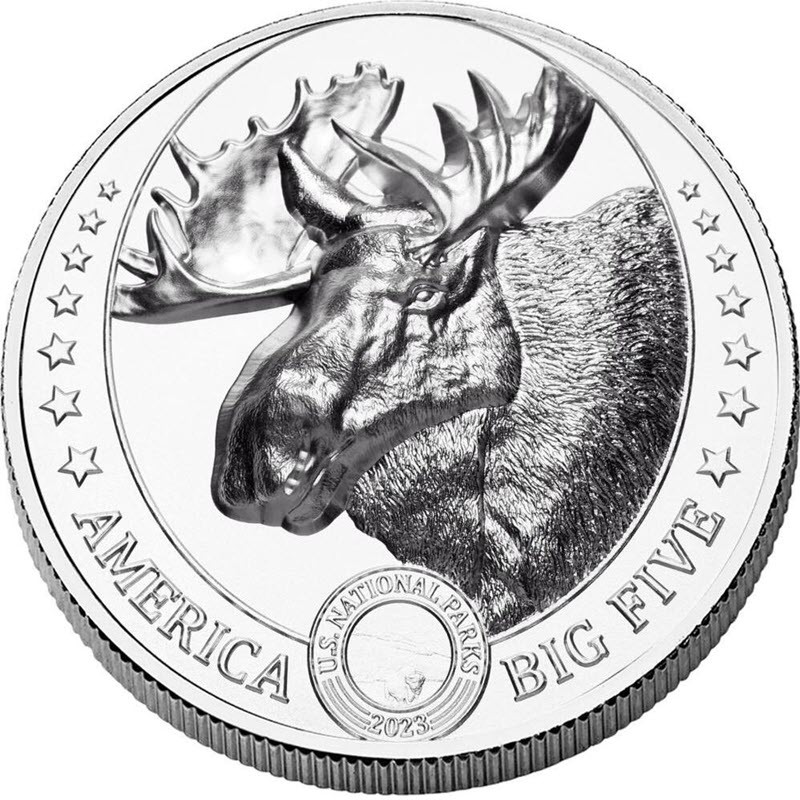 Moneta d'argento da collezione Fiji America Big Five Moose 2023 1 oncia d'argento puro 0,999