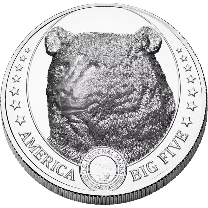 Moneta d'argento da collezione Fiji America Big Five Brown Bear 2023 1 oncia d'argento puro 0,999