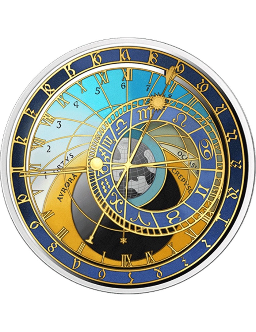 Malta: moneta d'argento da collezione Orologi del Municipio. Orologio astronomico di Praga 2025, Proof, 31,1 g di argento puro (0,999)
