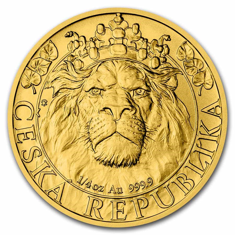La moneta d'oro Czech Lion 1/4 oz 2022 continua la popolare serie di monete della zecca ceca con un design completamente aggiornato nella sua quarta edizione. Il rovescio presenta il famoso leone ceco a due code con la corona di San Venceslao e un ramo di tiglio, simboli dello Stato ceco. Il dritto presenta un ritratto di profilo di Sua Maestà la Regina Elisabetta II, il taglio e l'anno di emissione. La moneta contiene 1/4 di oncia di oro puro 9999 ed è un'edizione limitata di soli 4.970 pezzi.