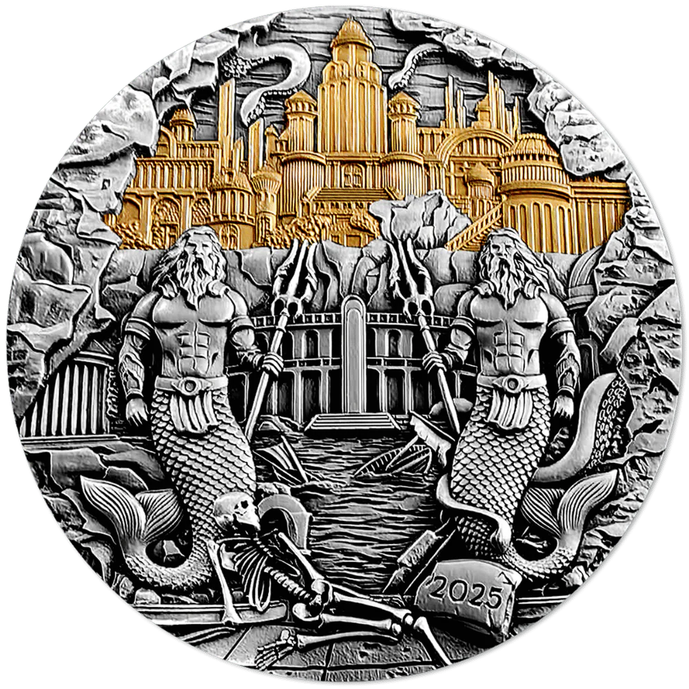 Samoa: moneta d'argento da collezione Atlantis 2025 (dorata), 155,5 g di argento puro (0,999)