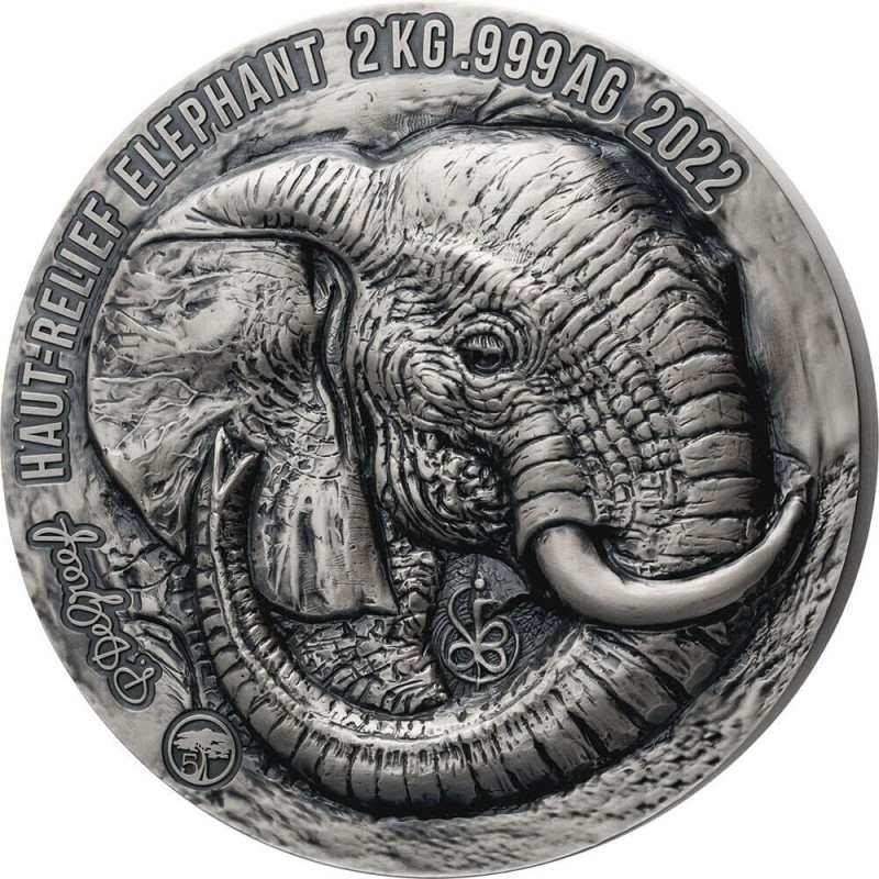 Repubblica della Costa d'Avorio: moneta d'argento da collezione Big Five. Elefante 2022, argento puro 2000 g (0,999)