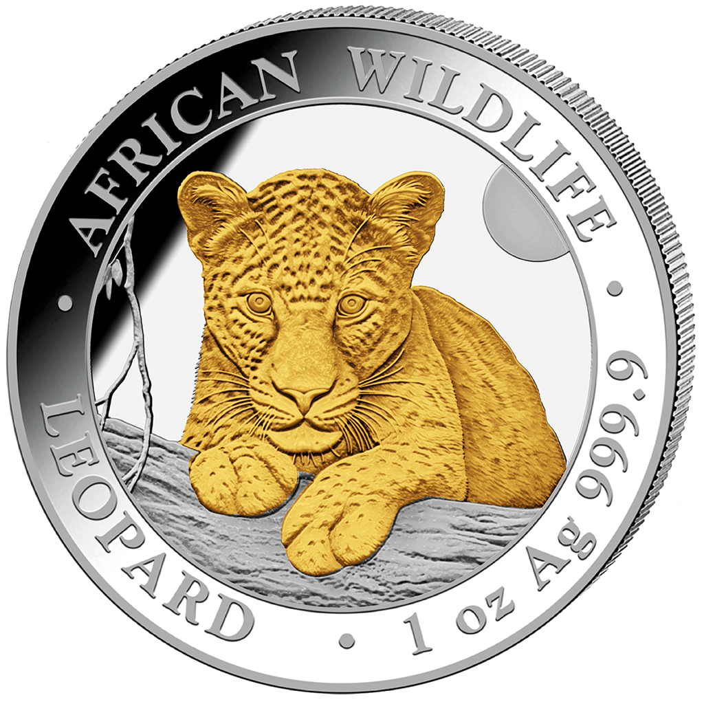 Moneta d'argento della Somalia Animali selvatici africani Leopardo 2025 Dorato 1 oncia