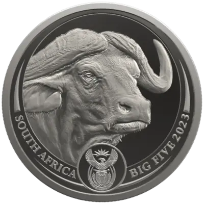 La quinta e ultima emissione della serie Big Five II della Zecca del Sudafrica rende omaggio al bufalo africano, uno dei membri iconici della fauna africana. Coniata in qualità Proof con una tiratura strettamente limitata a soli 500 pezzi in tutto il mondo, la moneta ha un taglio di 20 Rand. Il dritto presenta un potente ritratto ravvicinato di un bufalo accanto alle iscrizioni "SOUTH AFRICA", "BIG FIVE 2023" e lo stemma nazionale. Il rovescio presenta due metà speculari di una testa di bufalo; quando due monete vengono accostate formano un ritratto completo e più monete creano l'impressione visiva di un'intera mandria. Con un diametro di 32,69 mm e presentata in un cofanetto di legno originale con un Certificato di Autenticità numerato, questa moneta Proof in platino combina rarità, design innovativo ed eccezionale maestria.