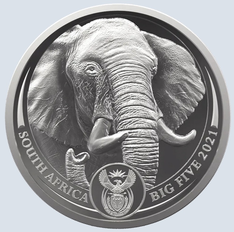 Moneta in platino del Sudafrica Big Five. Elefante 2021, 31,1 g Proof Monete da collezione