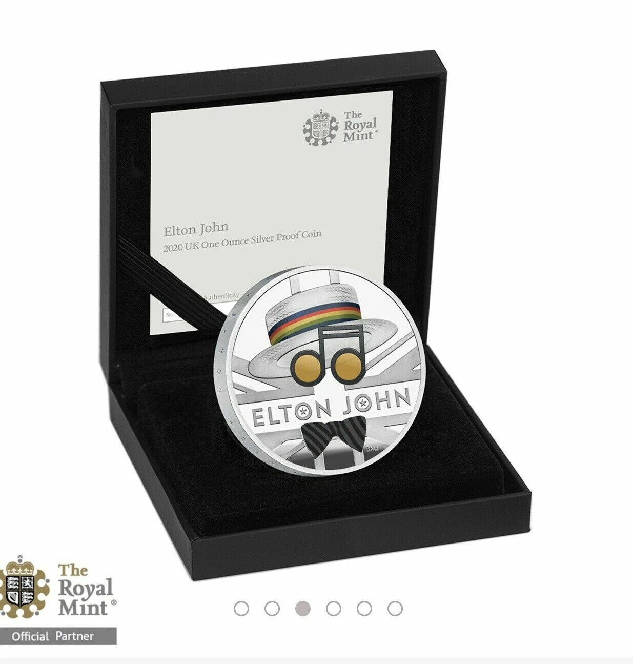 La seconda moneta d'argento della serie "Music Legends" è dedicata al leggendario artista britannico Elton John. Il rovescio raffigura i suoi attributi iconici - occhiali tondi, cappello e papillon - che simboleggiano il suo stile unico. Sir Elton Hercules John è un cantante, pianista e compositore eccezionale che ha avuto un'influenza significativa sullo sviluppo del soft rock ed è diventato uno degli artisti solisti britannici di maggior successo commerciale degli anni Settanta. La moneta è coniata in qualità Proof e presenta uno speciale disegno a colori che evidenzia l'immagine distintiva di Elton John. La moneta è emessa in un cofanetto originale con certificato di autenticità ed è limitata a 7.500 esemplari in tutto il mondo.