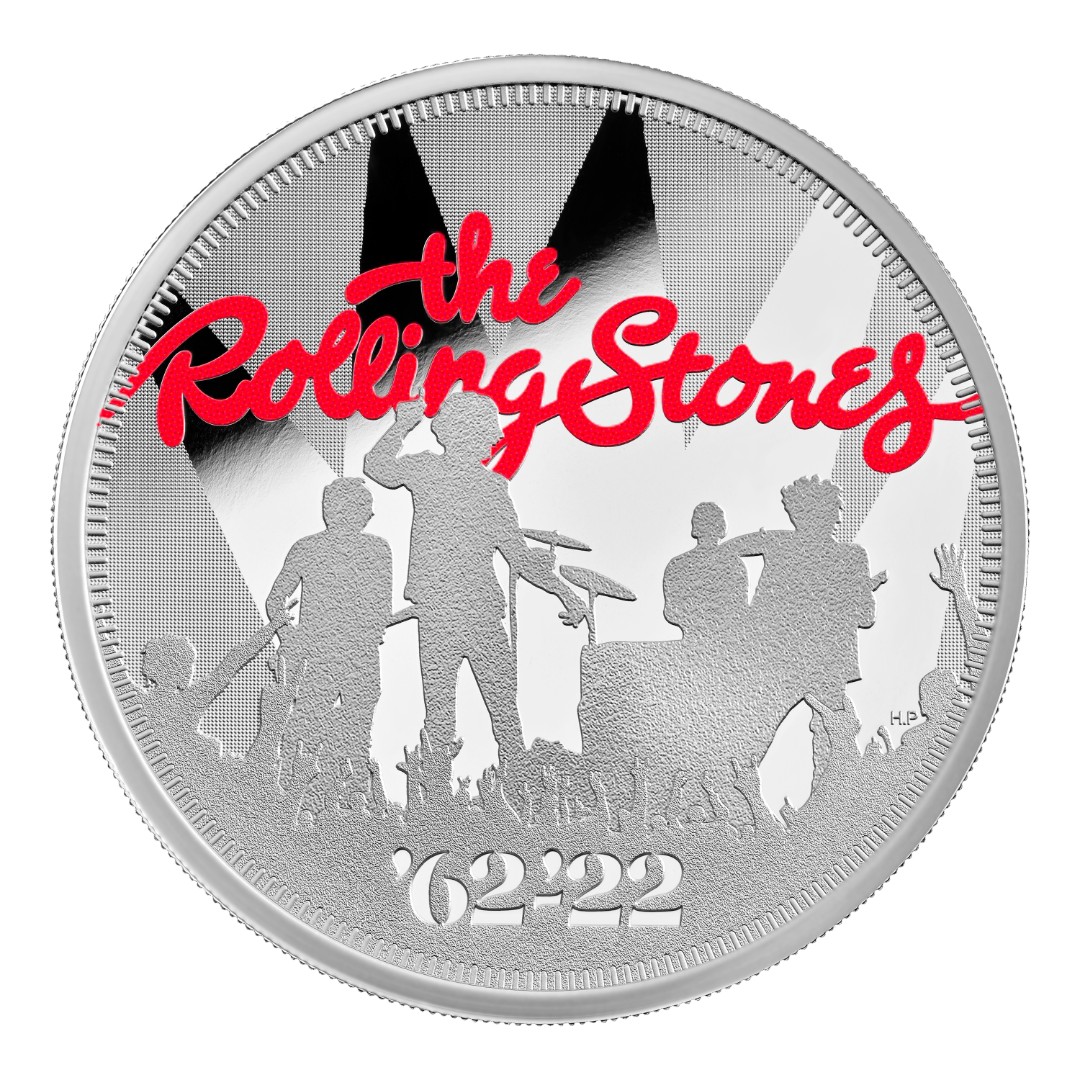 Regno Unito: moneta d'argento The Rolling Stones 2022 Proof colorata da 1 oncia