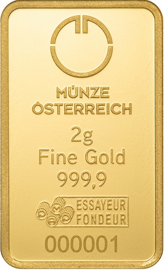 2 grammi di oro puro (0,9999) sotto forma di lingotto proveniente da uno dei produttori più rinomati: la zecca austriaca. Il lingotto è coniato (non fuso) e confezionato in un blister con un certificato.